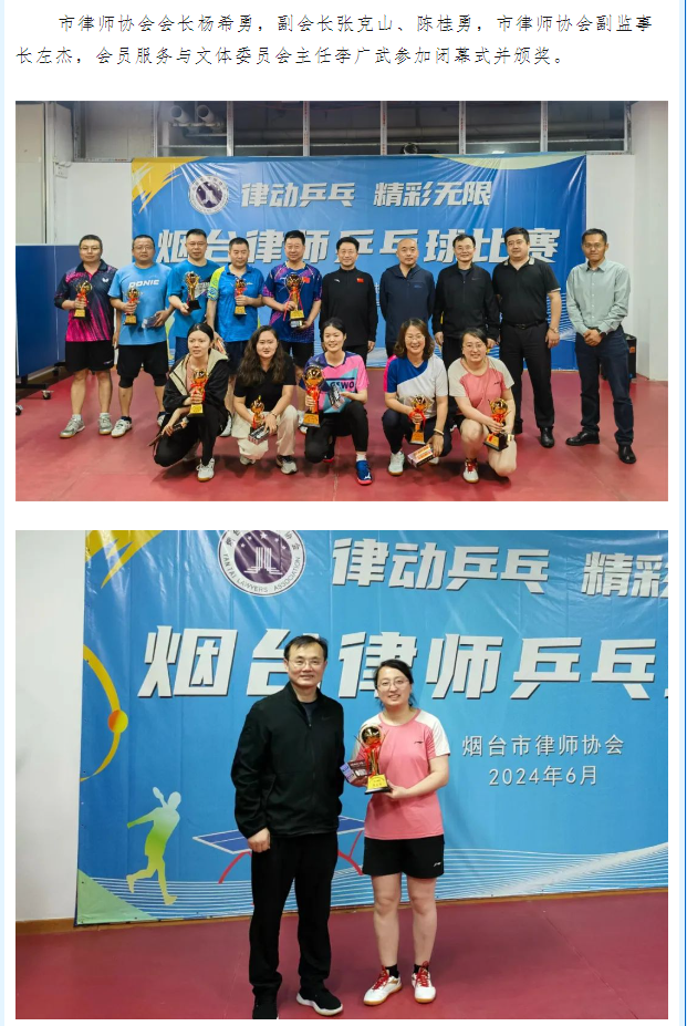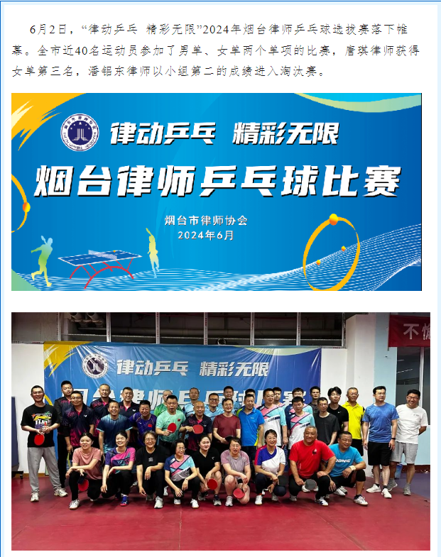 唐琪、潘铝东参加市律协乒乓球比赛喜获佳绩