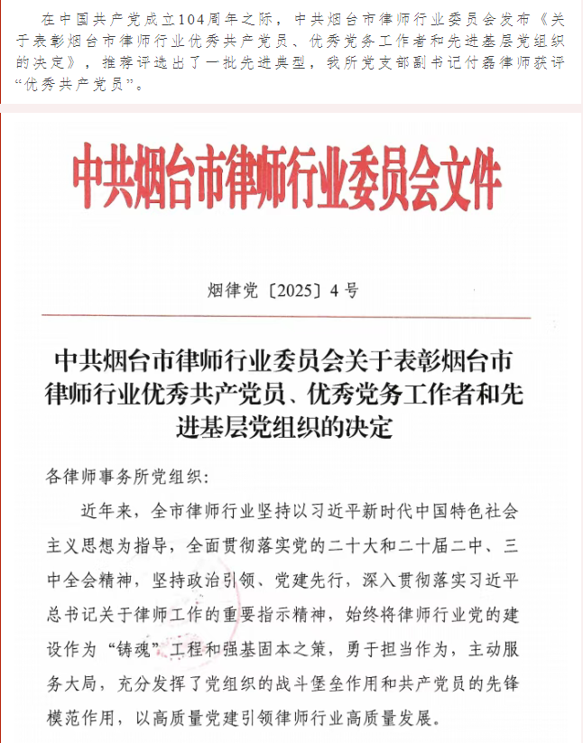 信谊荣誉 | 付磊获评市律师行业优秀共产党员