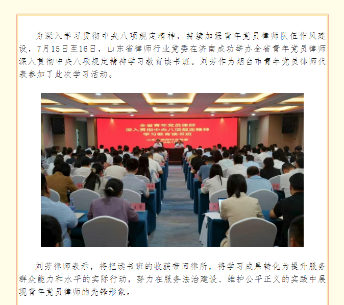 信谊动态 | 刘芳参加全省青年党员律师深入贯彻中央八项规定精神学习教育读书班