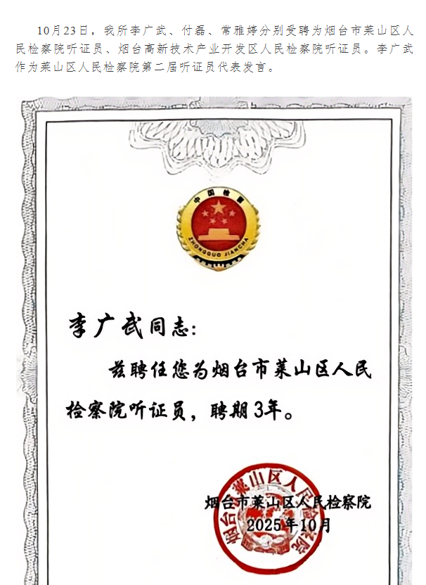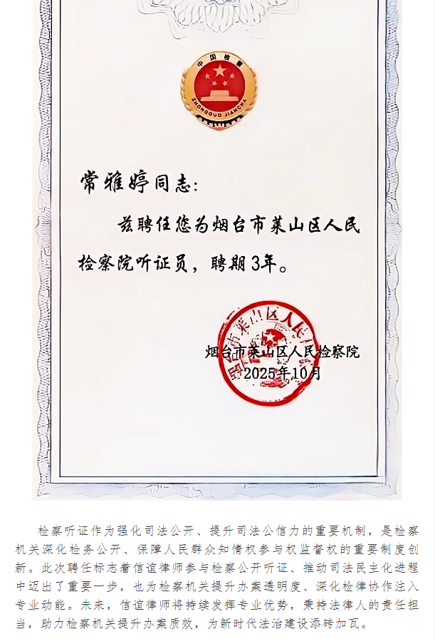 我所律师受聘担任检察机关听证员